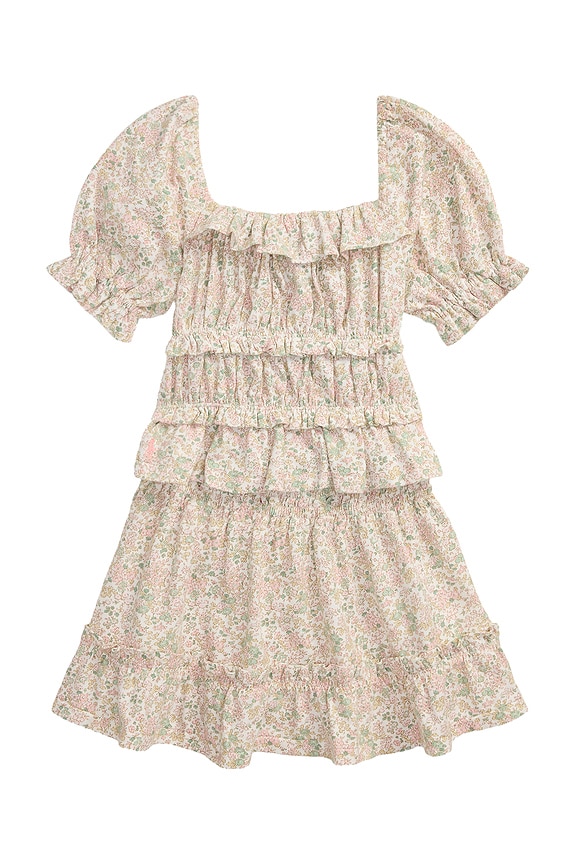 Kids Short Sleeve Cotton Jersey Floral Tiered Top With Matching Skirt